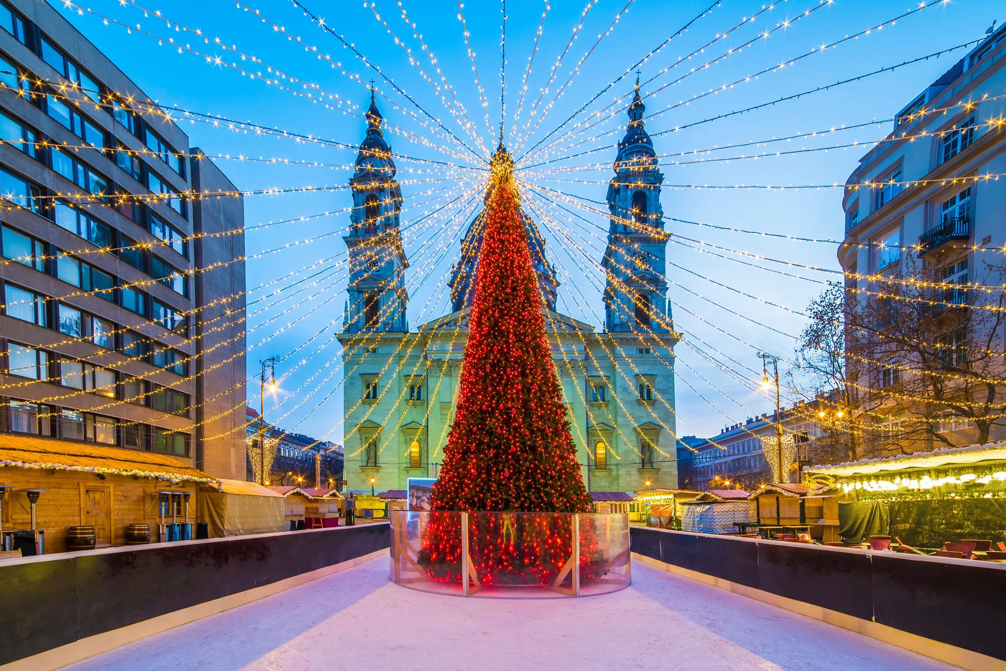 The city’s grand cathedral and an ice rink full of graceful skaters surround its festive market, where you can indulge in a delicious “Hungarian chimney cake” or savor a hearty bowl of paprika-infused goulash.